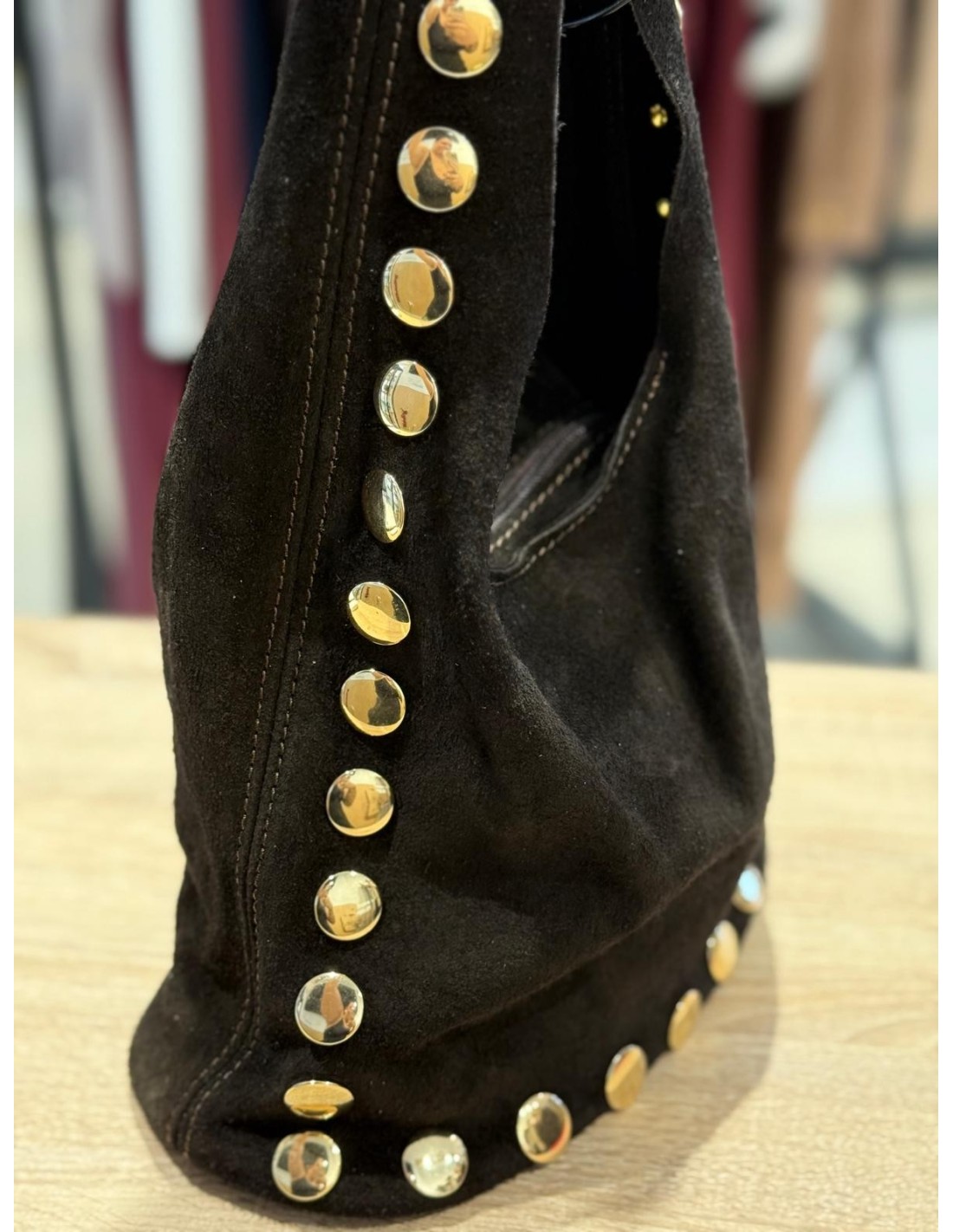 BOLSO MARRÓN CHOCOLATE TACHUELAS