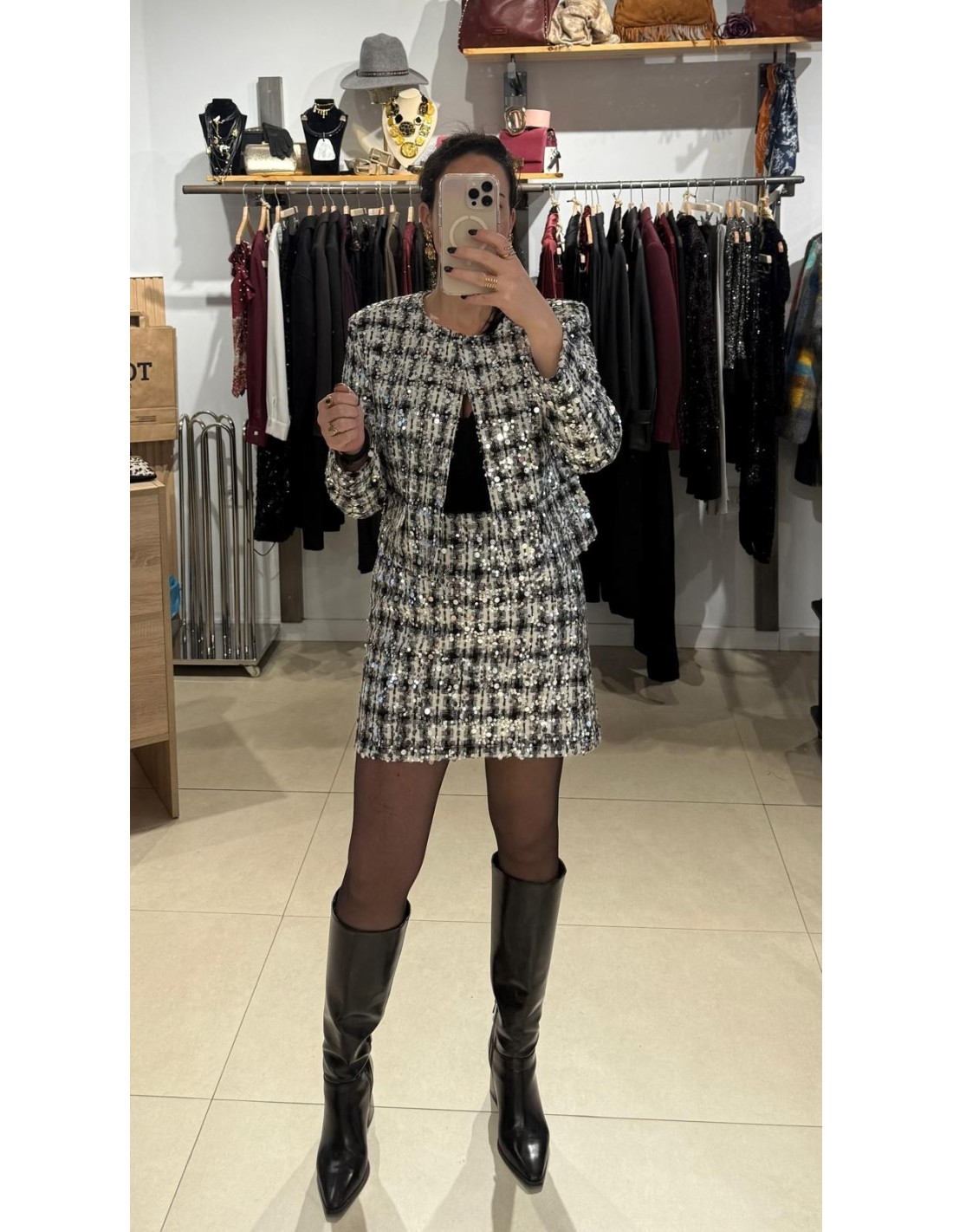 CONJUNTO BRILLOS DE FALDA Y CHAQUETA