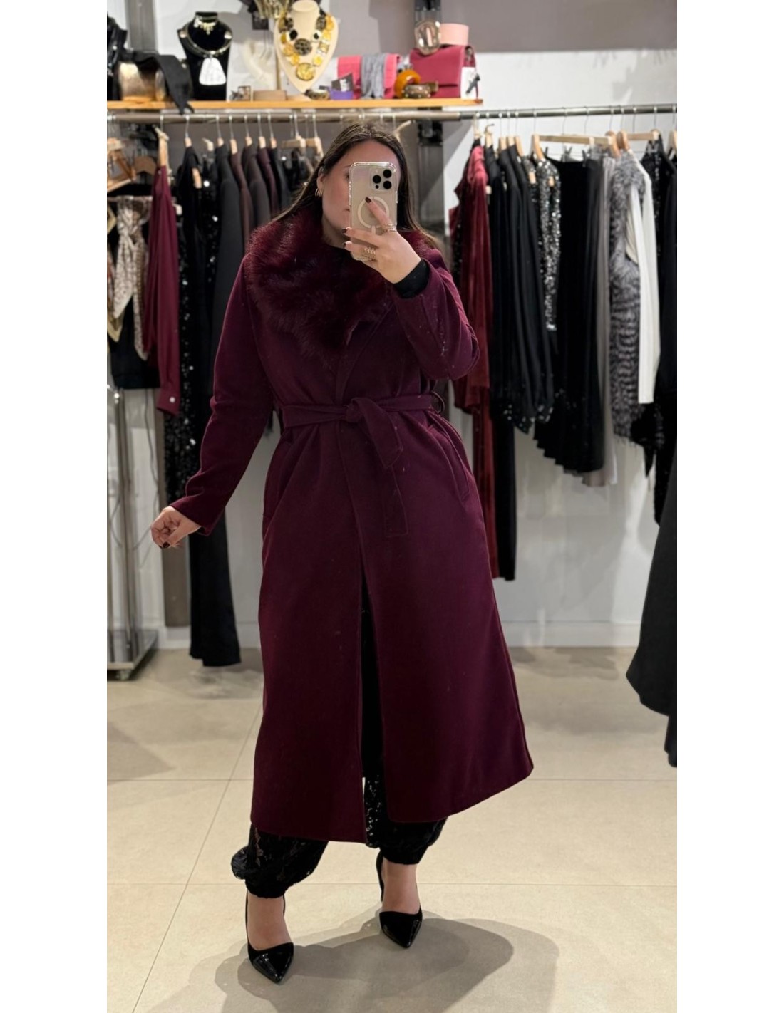 ABRIGO BURDEOS CON PELO DE QUITA Y PON