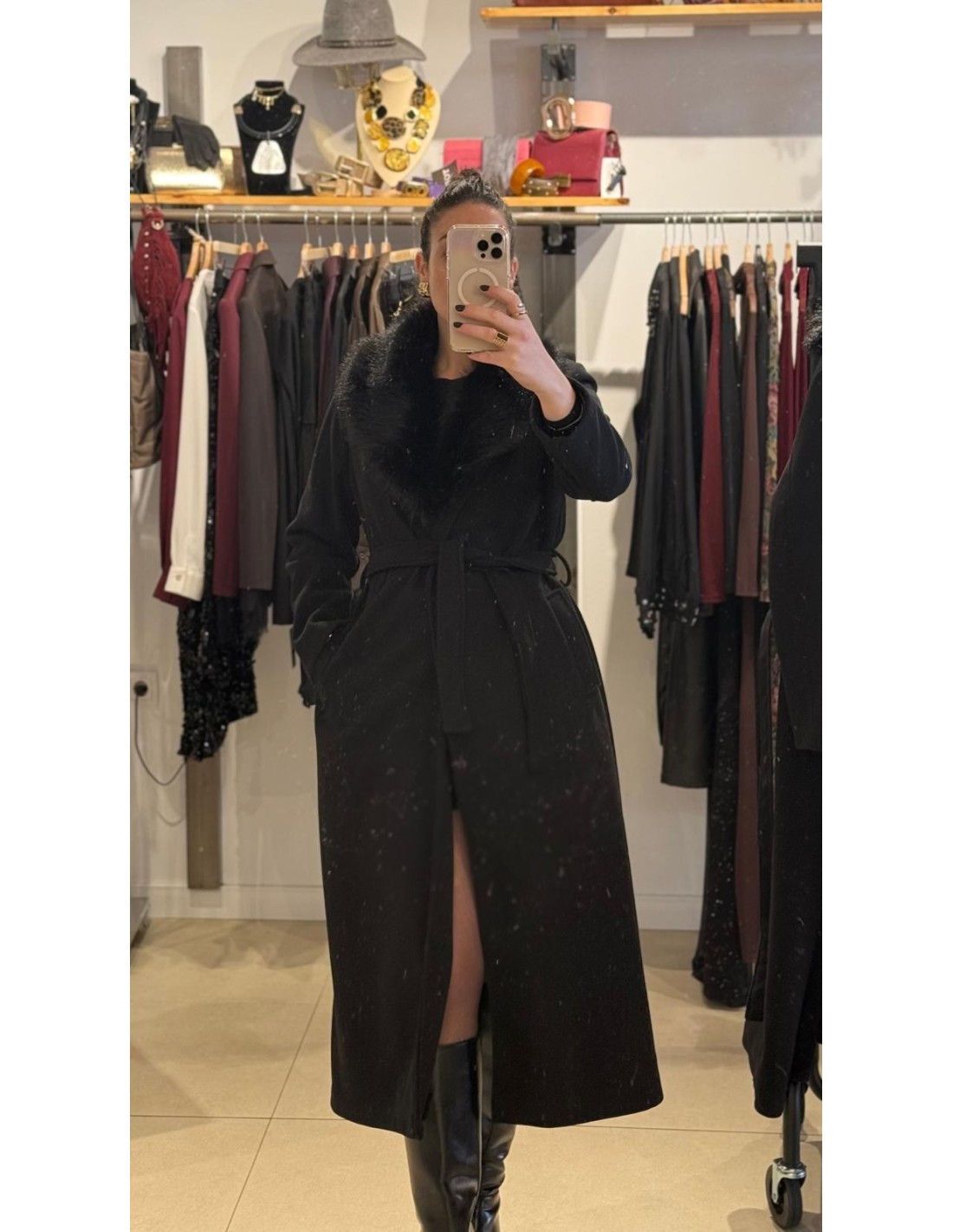 ABRIGO NEGRO CON PELOS DE QUITA Y PON