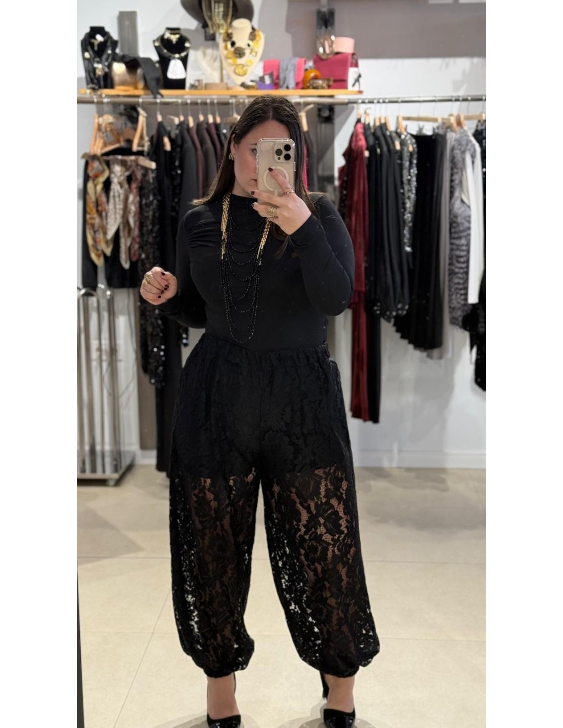 PANTALÓN DE PUÑO NEGRO ENCAJE